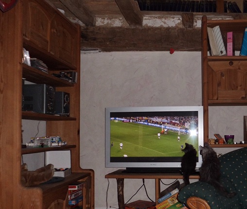 EM2012: Nach getanem Tagewerk - in Annikas und Aaronnes Fall Schränke aufräumen und Spiele stapeln...wird gemeinsam Fussball geschaut